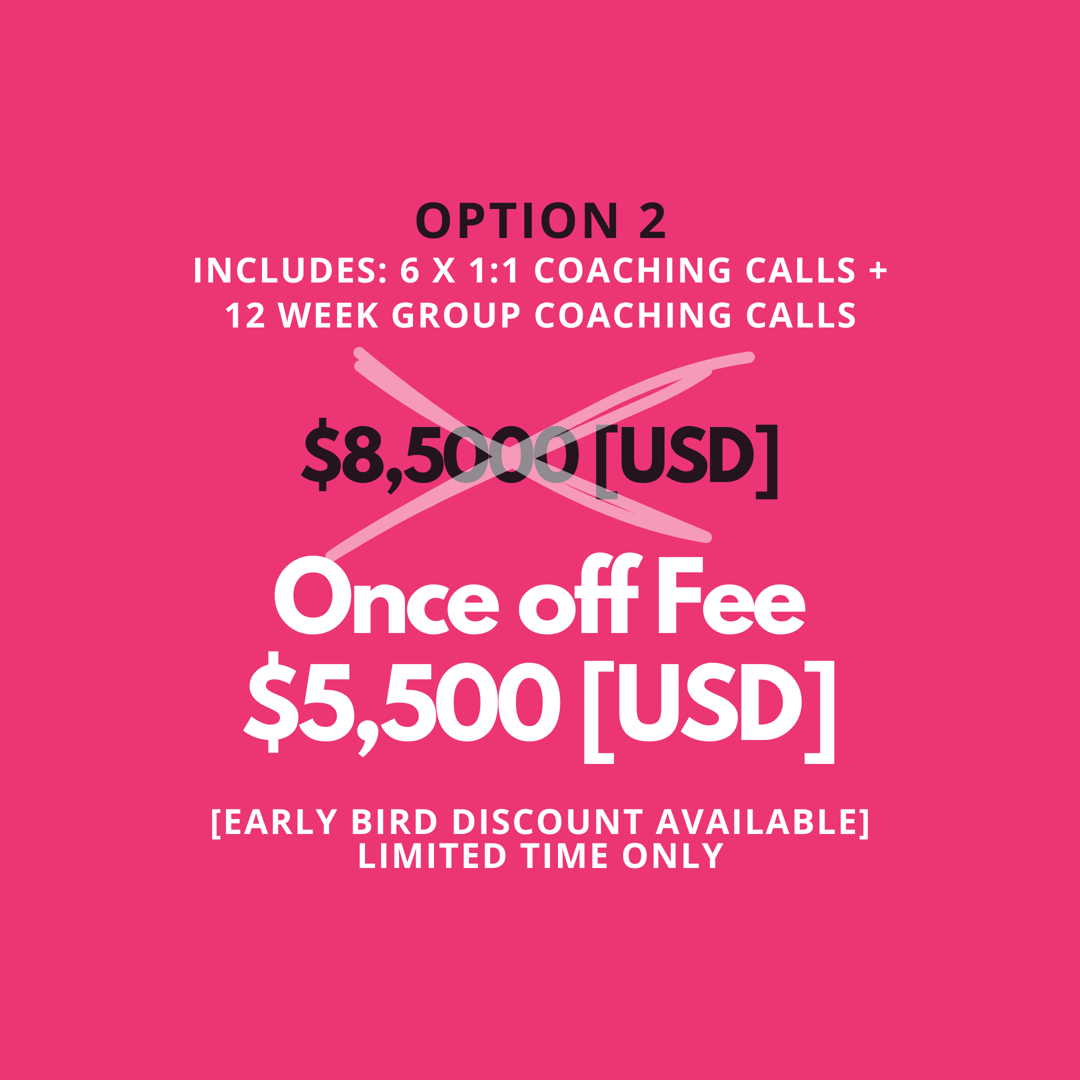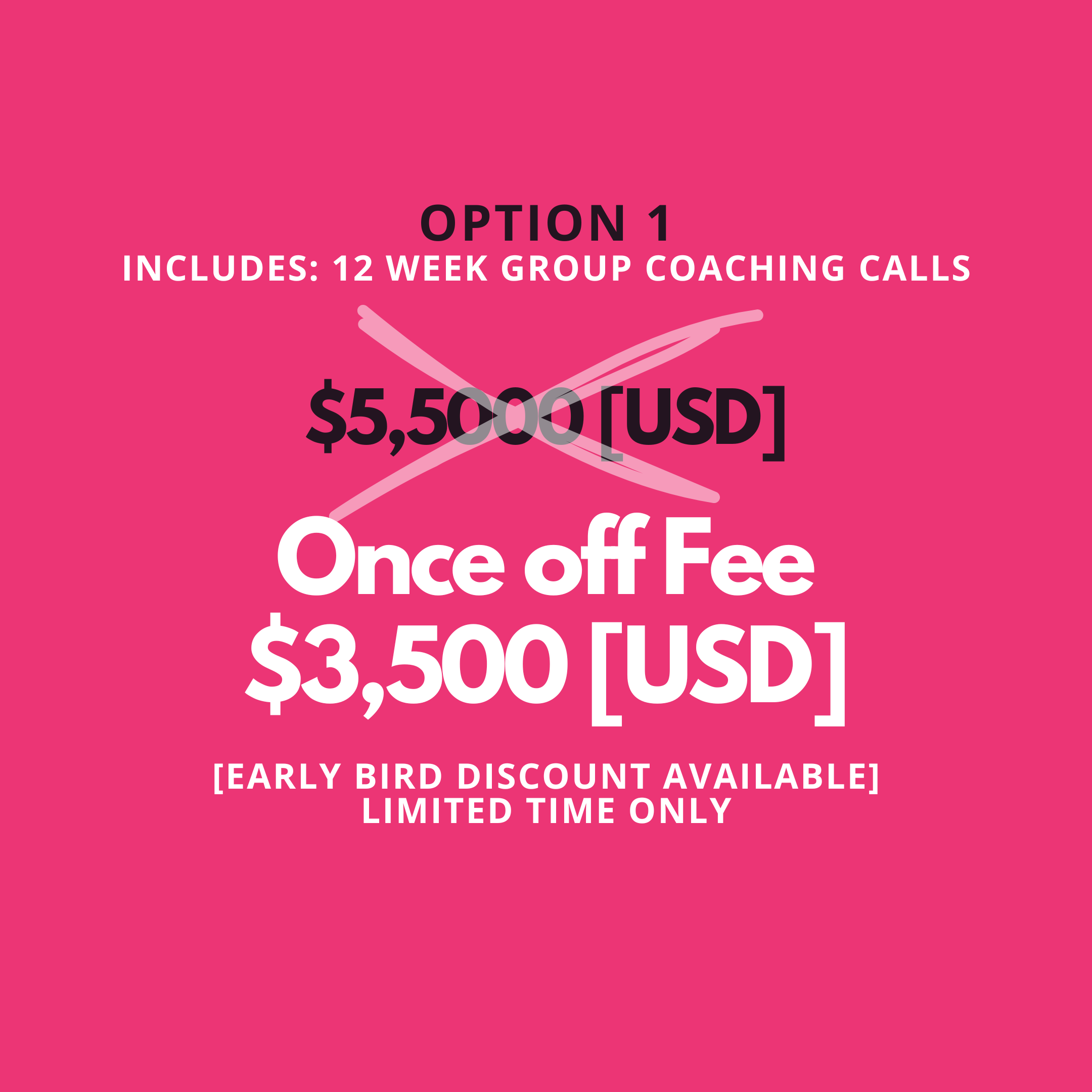 And the best part. You can also get 6 x 1:1 coaching sessions with me within the 12 weeks over and above the group coaching, for an additional small fee. This has been a game changer for my clients because they know that I am there for them NO MATTER WHAT! The 1:1 sessions alone are valued at $5,000.