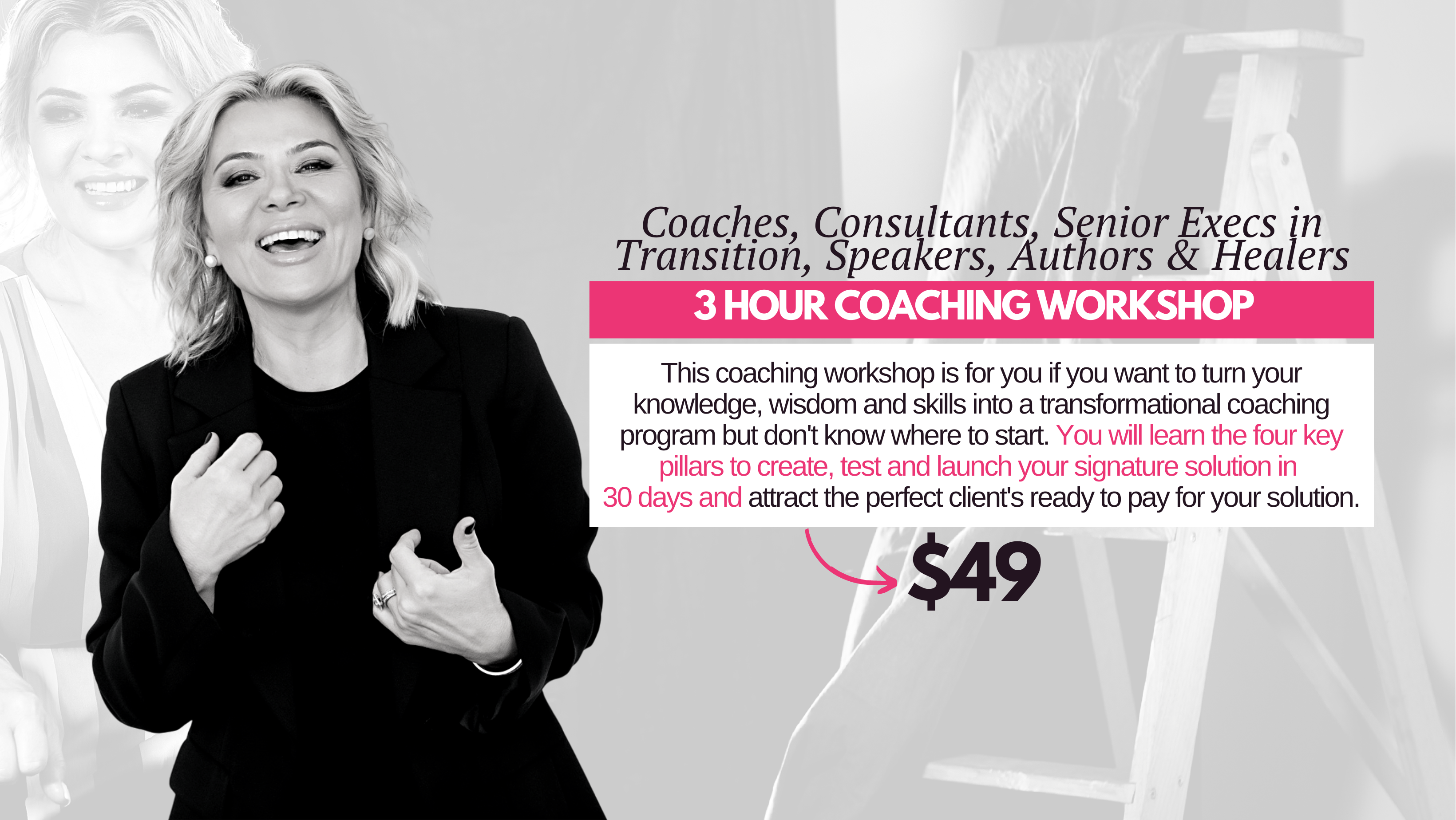 INTRODUCING THE 3 HOUR COACHING WORKSHOP DESIGNED FOR BUSY, AMBITIOUS COACHES, CONSULTANTS, SENIOR EXECS IN TRANSITION, SPEAKERS, AUTHORS AND HEALERS…