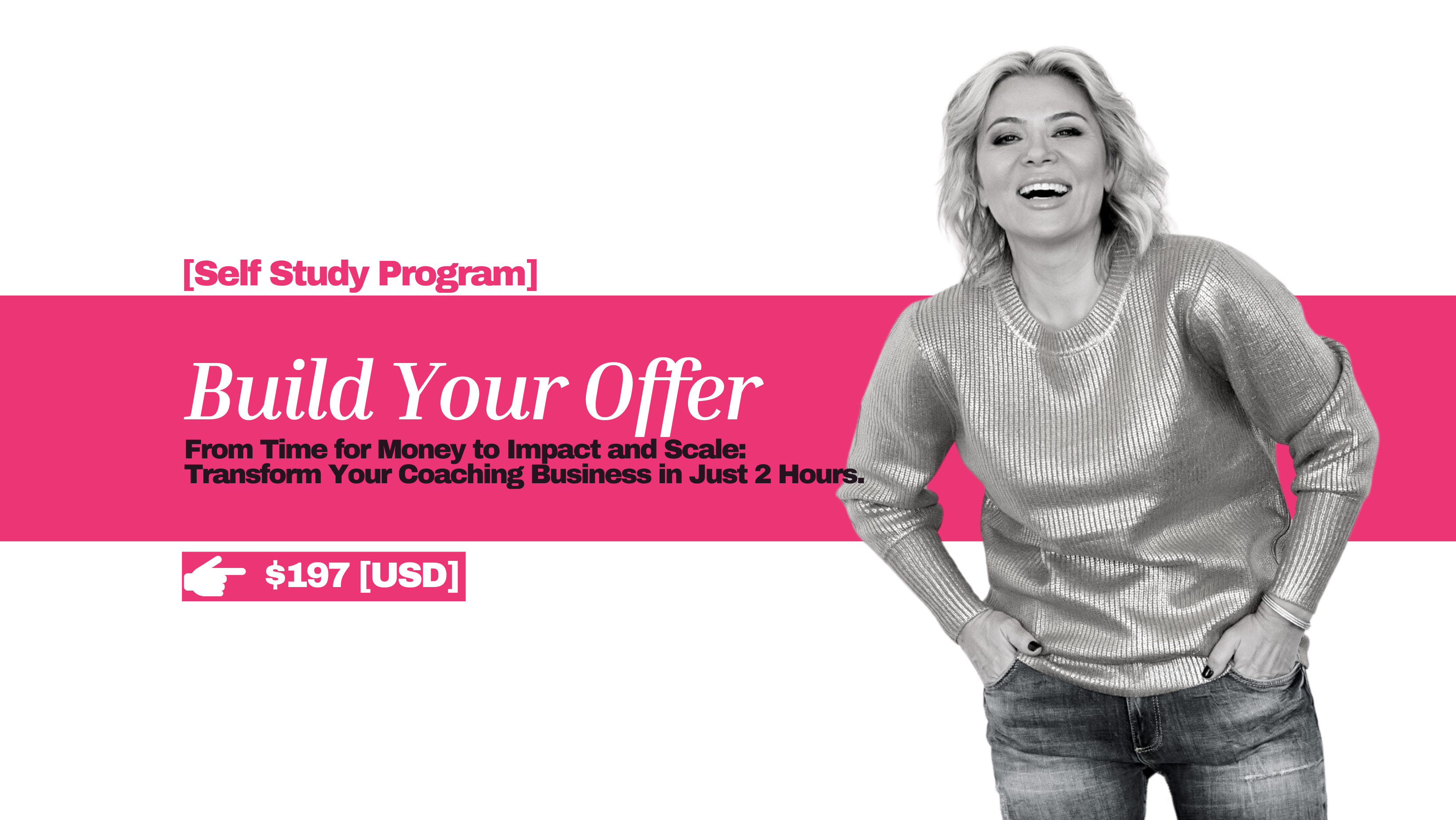 This self study program is your gateway to breaking free from the constraints of one-to-one services and stepping into a future where your business scales effortlessly, delivering exceptional results. Join me and unlock the secrets to creating offers that deliver real outcomes, results, and transformation.
